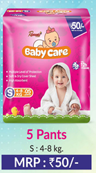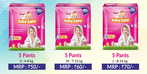 Pack – 5 Pants, Romaic Care Presents A gently-fitting tape-style baby diaper in Small size, designed for newborns and small infants. The adjustable fit makes it easy to put on and take off, while the soft material ensures comfortable movement and secure coverage throughout the day. Ideal for everyday diapering needs.